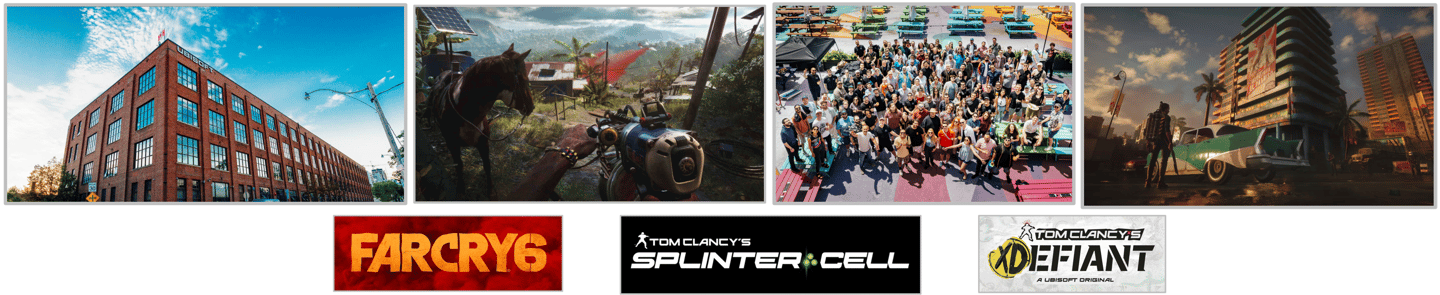 Ubisoft Toronto is one of the largest Canadian video game development studios, leading production on some of Ubisoft's most well-known brands including Tom Clancy's Splinter Cell: Blacklist, Far Cry Primal, Starlink: Battle for Atlas, Far Cry 6, and Watch Dogs Legion.
